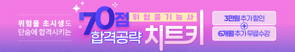 위험물기능사 필기 시험은 CBT 문제은행 방식으로 출제되므로 응시자별 출제되는 문제가 상이합니다. 본 강의 및 교재에서는 출제문제들 중 일부 주요한 내용을 선별하여 제공하며, 회차별 기출복원문제는 제공되지 않으므로 구매 시 참고하시기 바랍니다.
