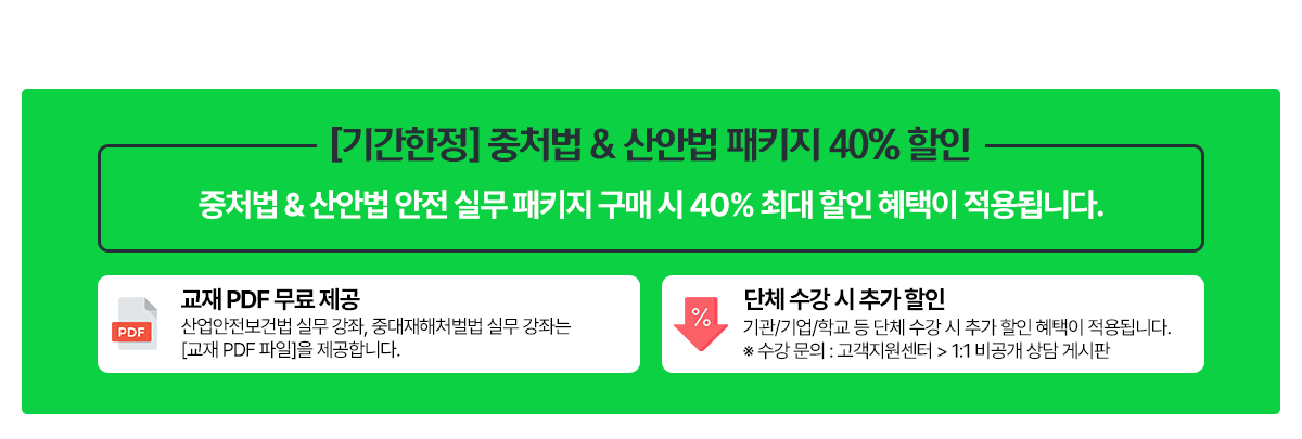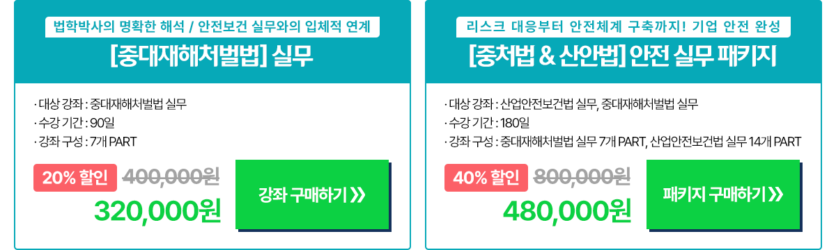 중대재해처벌법 실무 320,000원 중처법&산안법 안전 실무 패키지 480,000원